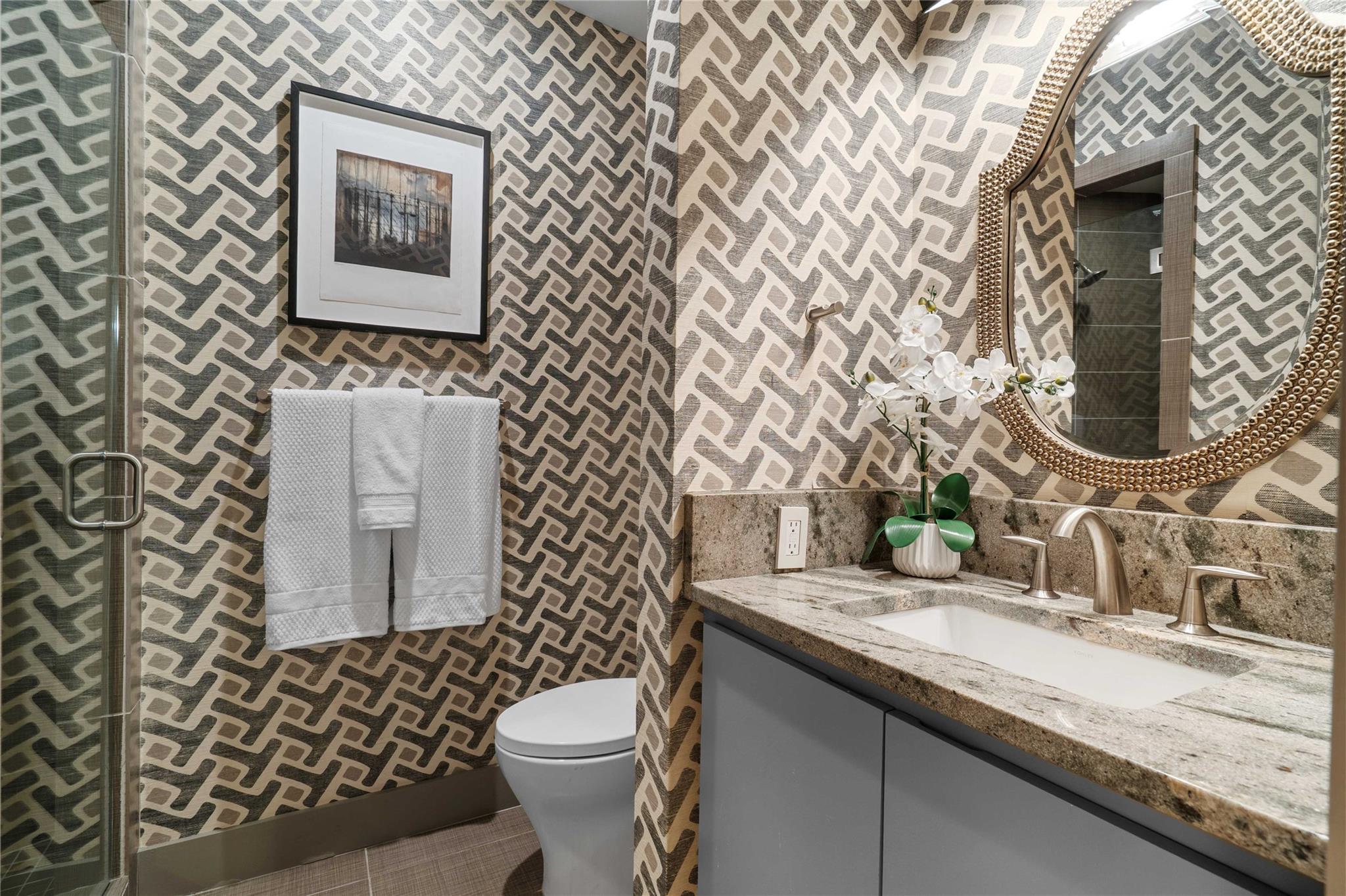 The main floor offers two spacious bedrooms and two full baths, including an ensuite with a walk-in shower. The primary suite is privately located on the second level and features dual vanities, a walk-in shower, and a custom walk-in closet. A flexible layout allows the upper portion of the home--with its own bedroom, bath, and living area--to be closed off with a private entrance, ideal for guests or potential Airbnb income.