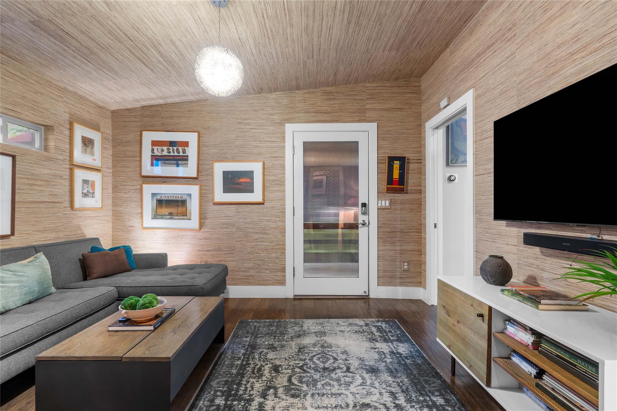 Enjoy seamless indoor-outdoor living through a private breezeway and three separate balconies. The heated pool with lighting and swim jet, installed in 2021, provides a resort-style retreat surrounded by lush greenery. With a durable metal roof and timeless mid-century aesthetic, this Travis Heights gem offers style, comfort, and versatility in one of Austin's most sought-after neighborhoods.